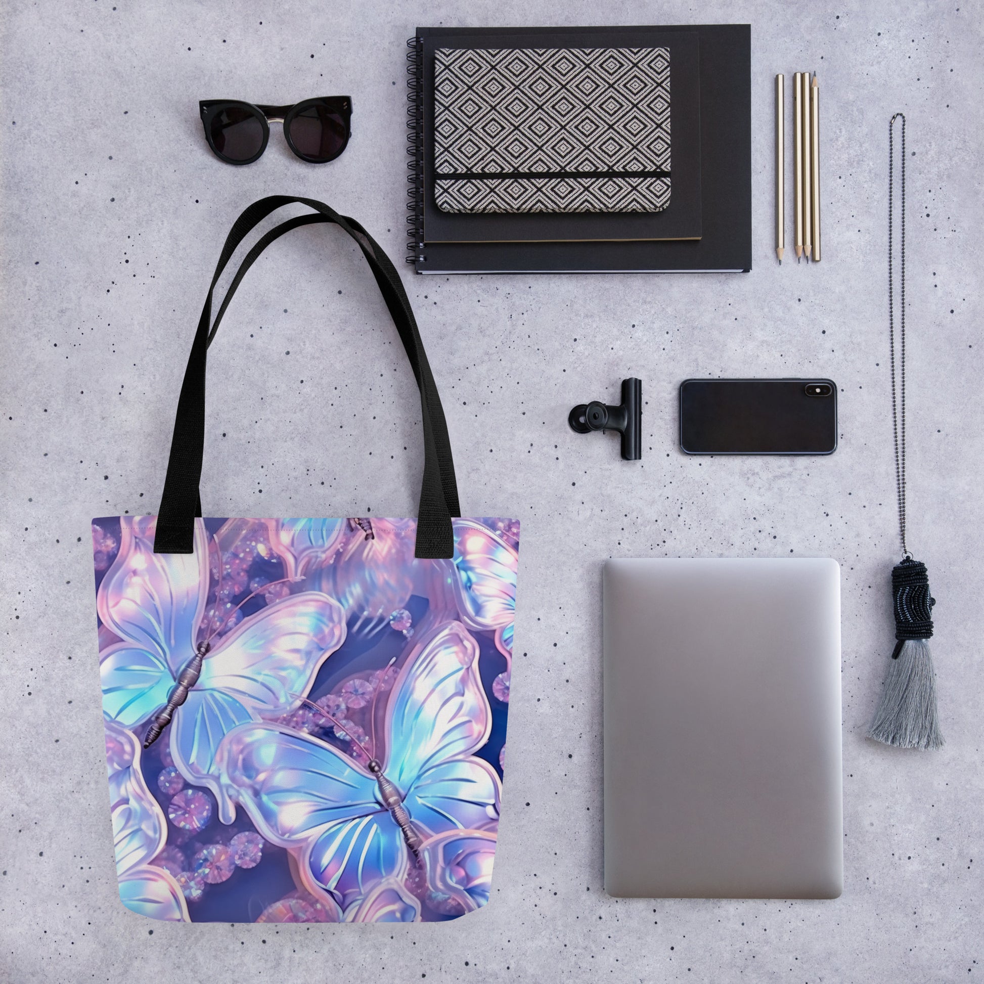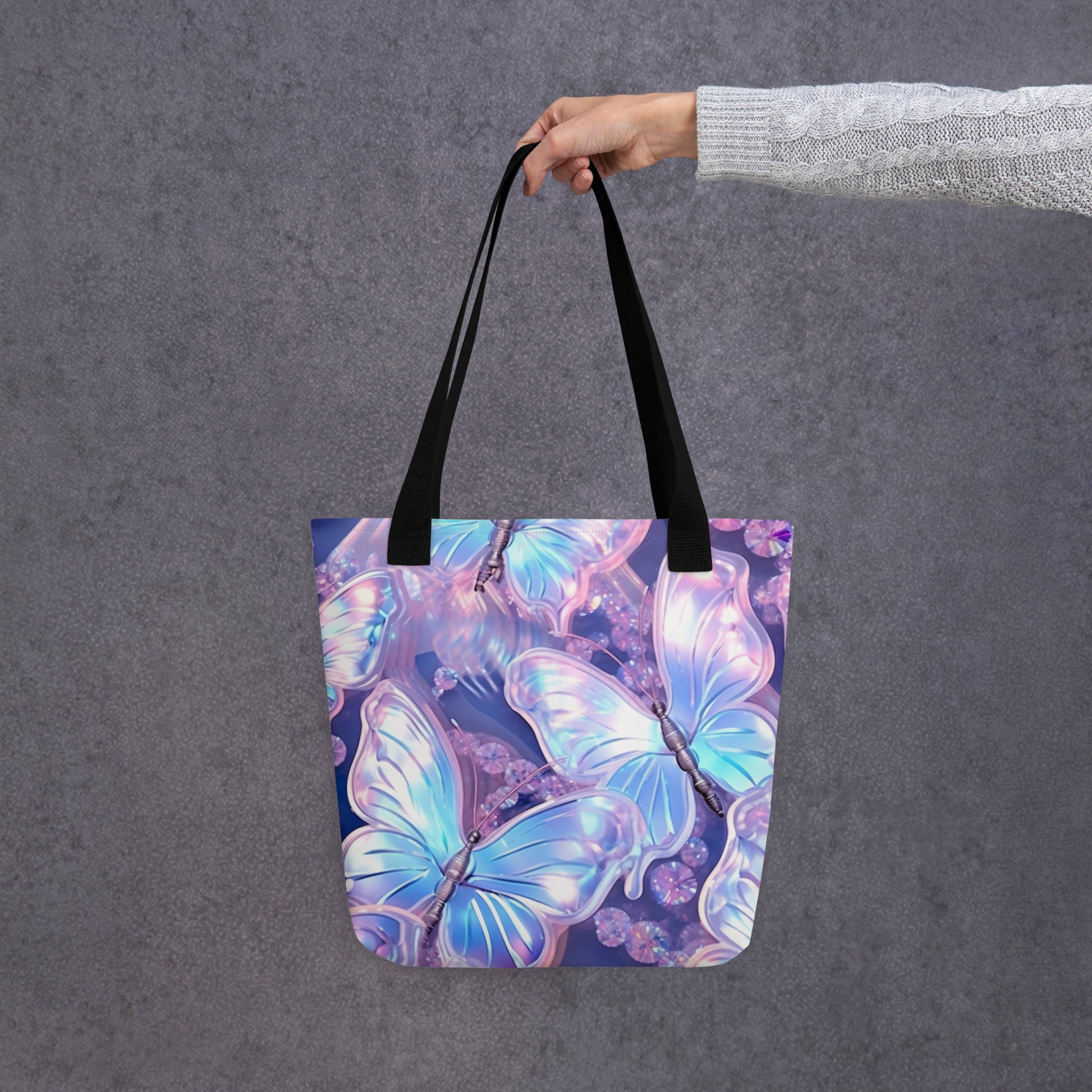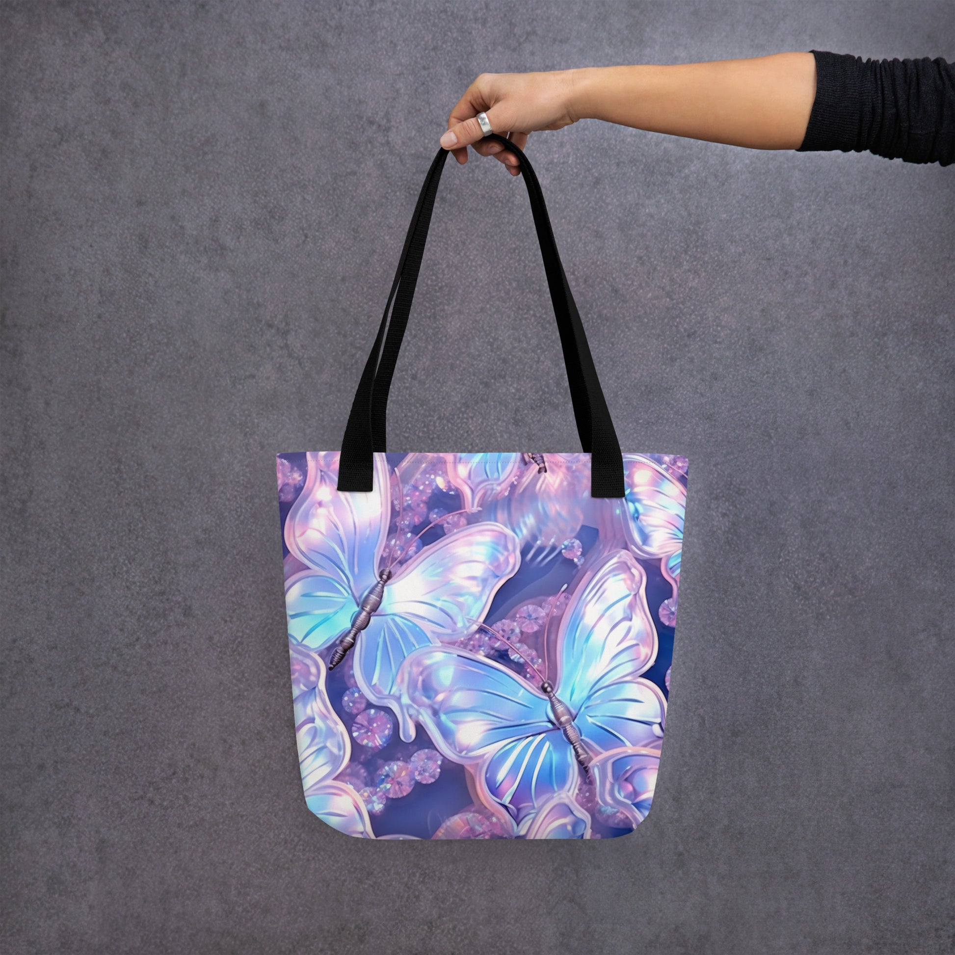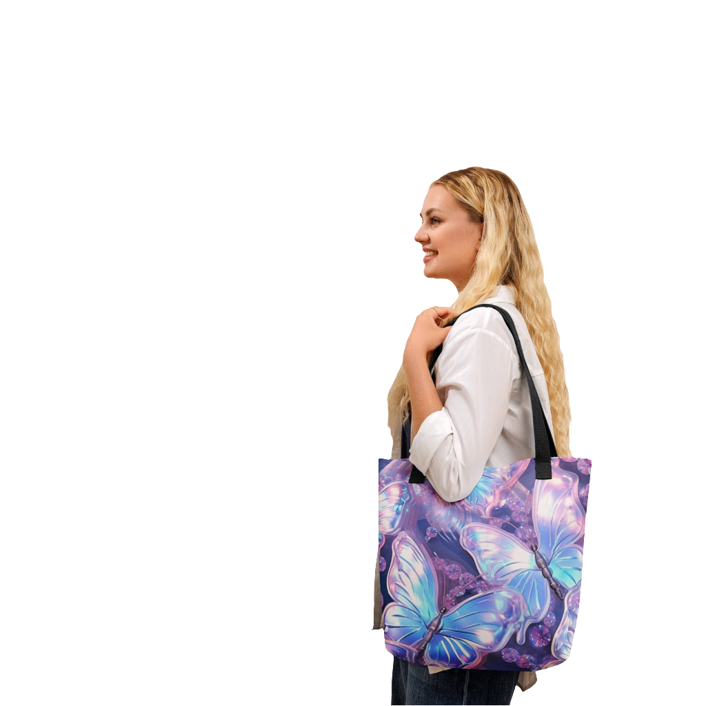 Purple Holographic Butterfly All Over Print Tote Bag
